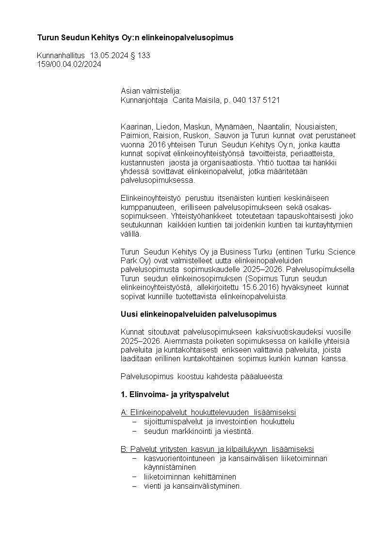 Turun seudun elinkeinosopimuksen palvelusopimus 2025-2026 |
