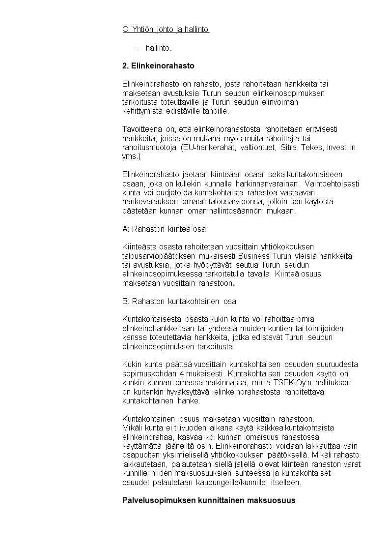 Kuntakohtainen liite Turun seudun elinkeinosopimuksen palvelusopimukseen |