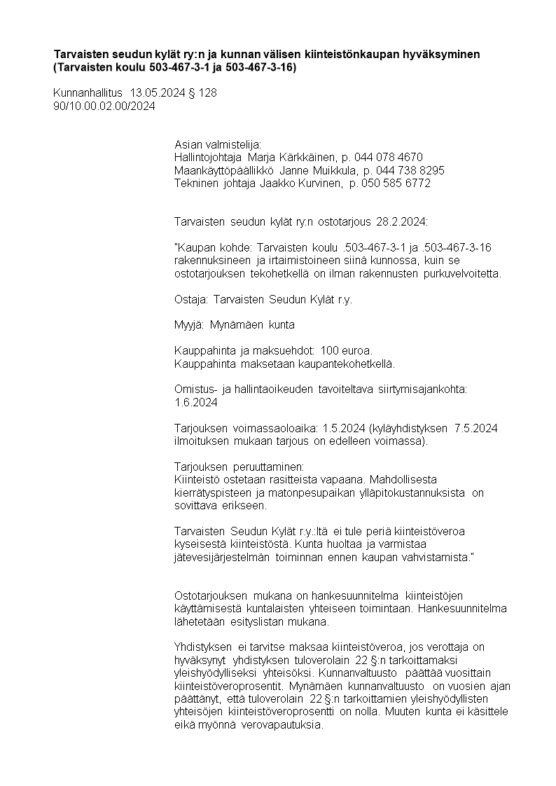 Pöytäkirja 13.05.2024/Pykälä 128