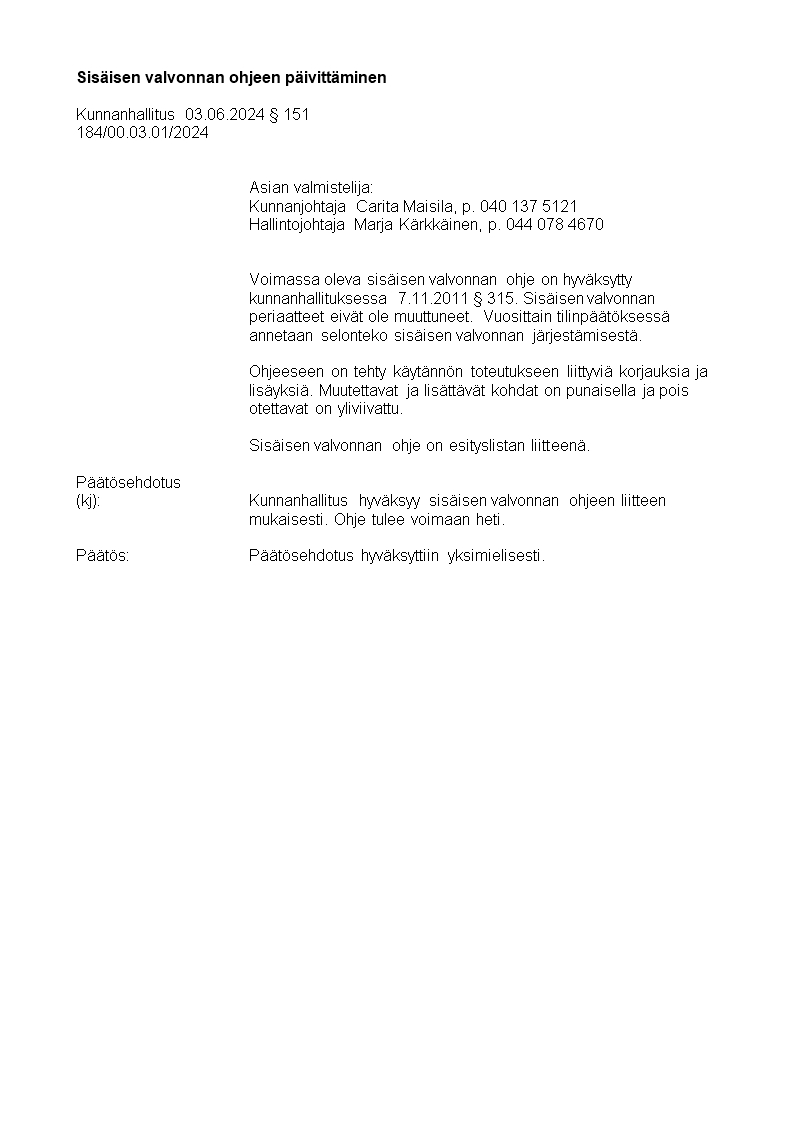 Pöytäkirja 03.06.2024/Pykälä 151