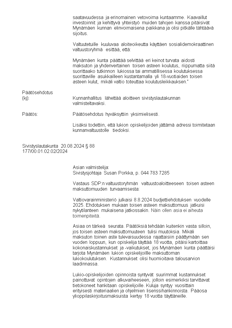 Pöytäkirja 20.08.2024/Pykälä 88