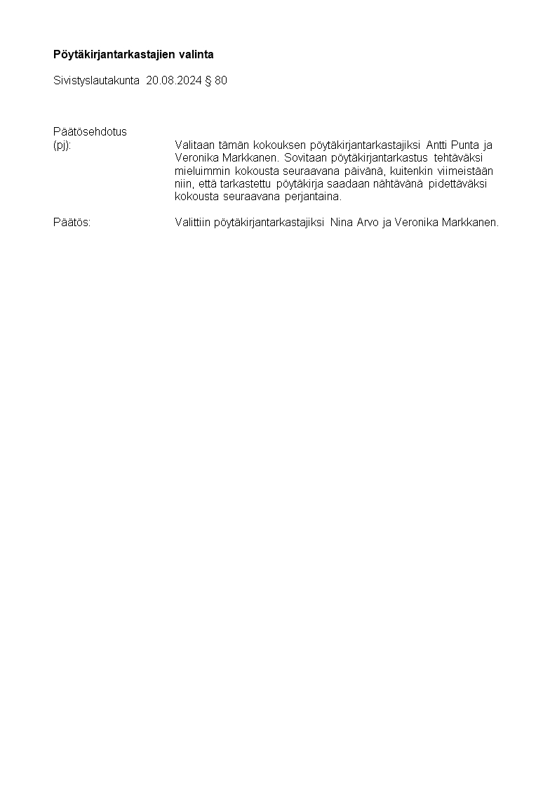 Pöytäkirja 20.08.2024/Pykälä 80