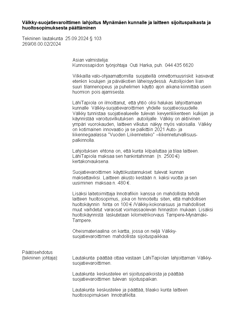 Pöytäkirja 25.09.2024/Pykälä 103