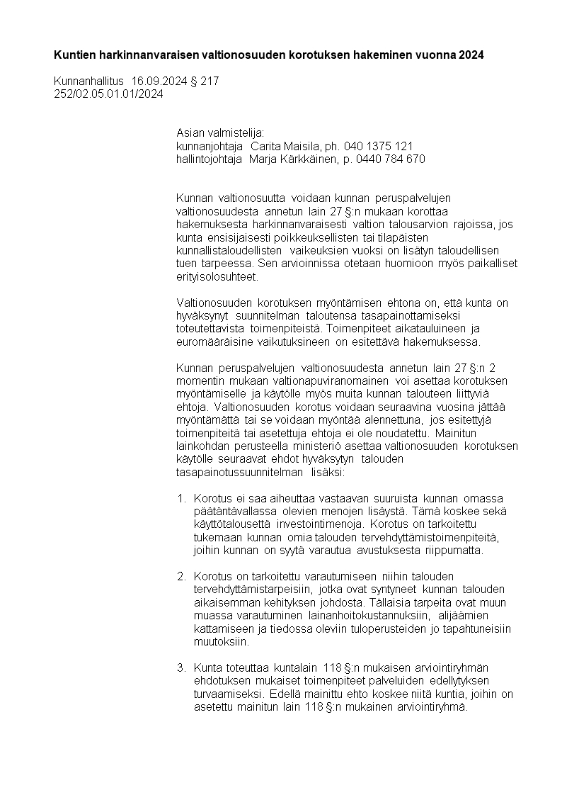 Pöytäkirja 16.09.2024/Pykälä 217