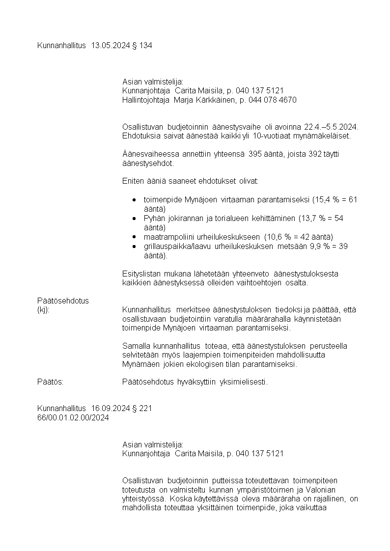 Pöytäkirja 16.09.2024/Pykälä 221