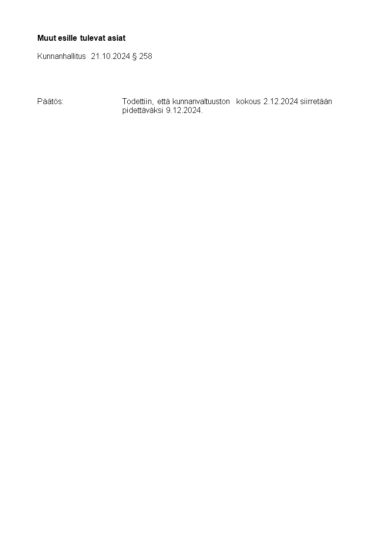 Pöytäkirja 21.10.2024/Pykälä 258