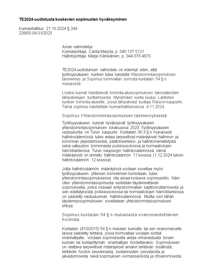 Pöytäkirja 21.10.2024/Pykälä 249