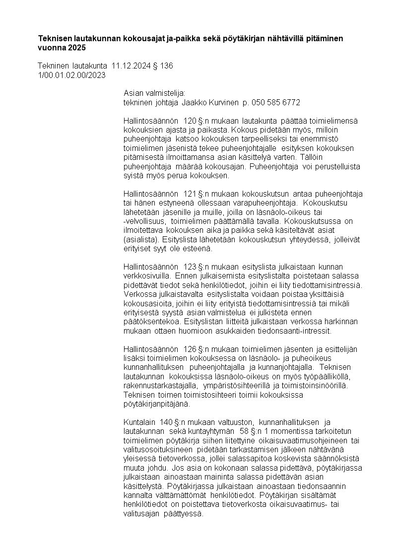 Pöytäkirja 11.12.2024/Pykälä 136