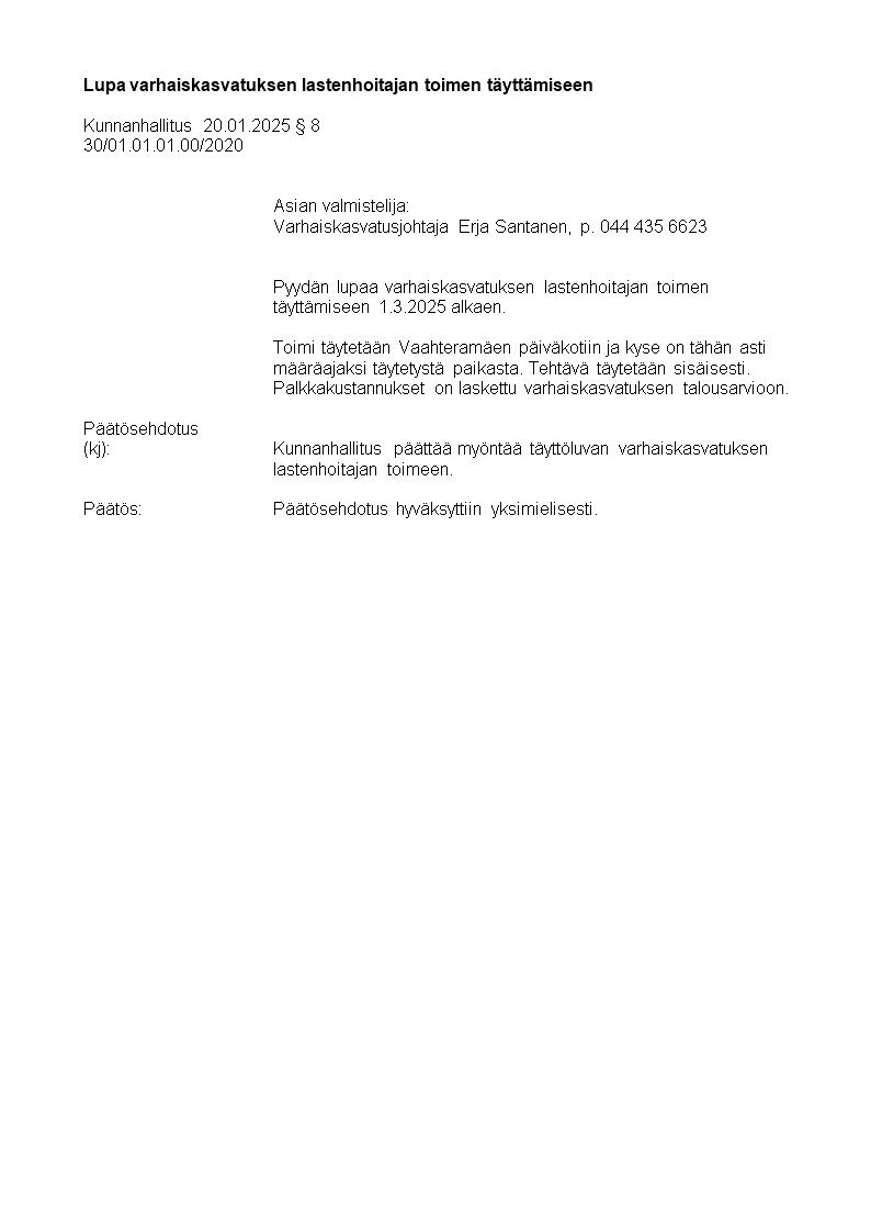 Pöytäkirja 20.01.2025/Pykälä 8
