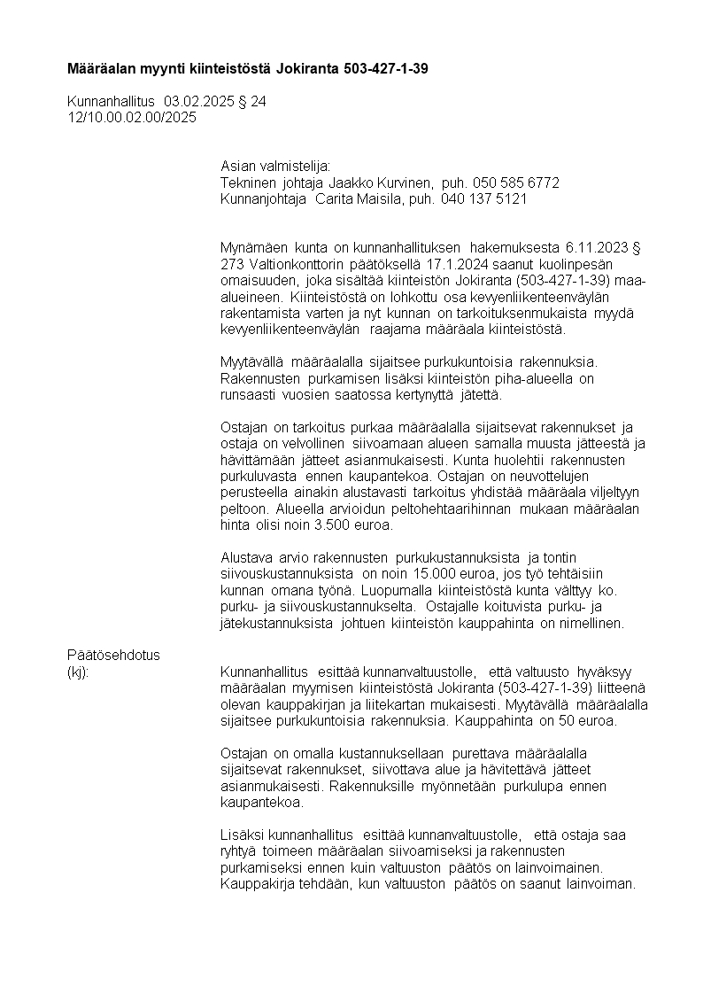 Pöytäkirja 03.02.2025/Pykälä 24