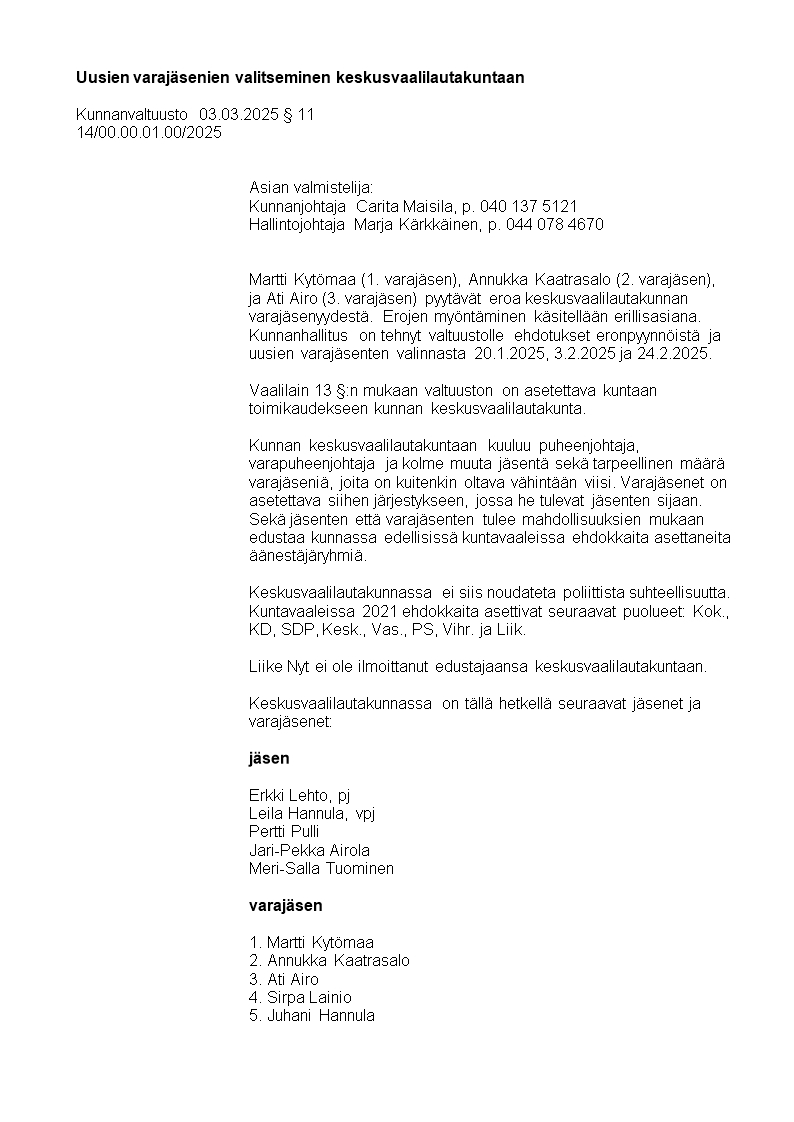 Pöytäkirja 03.03.2025/Pykälä 11