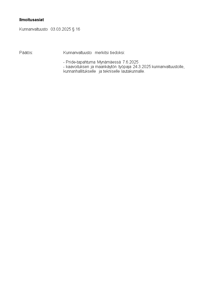 Pöytäkirja 03.03.2025/Pykälä 16