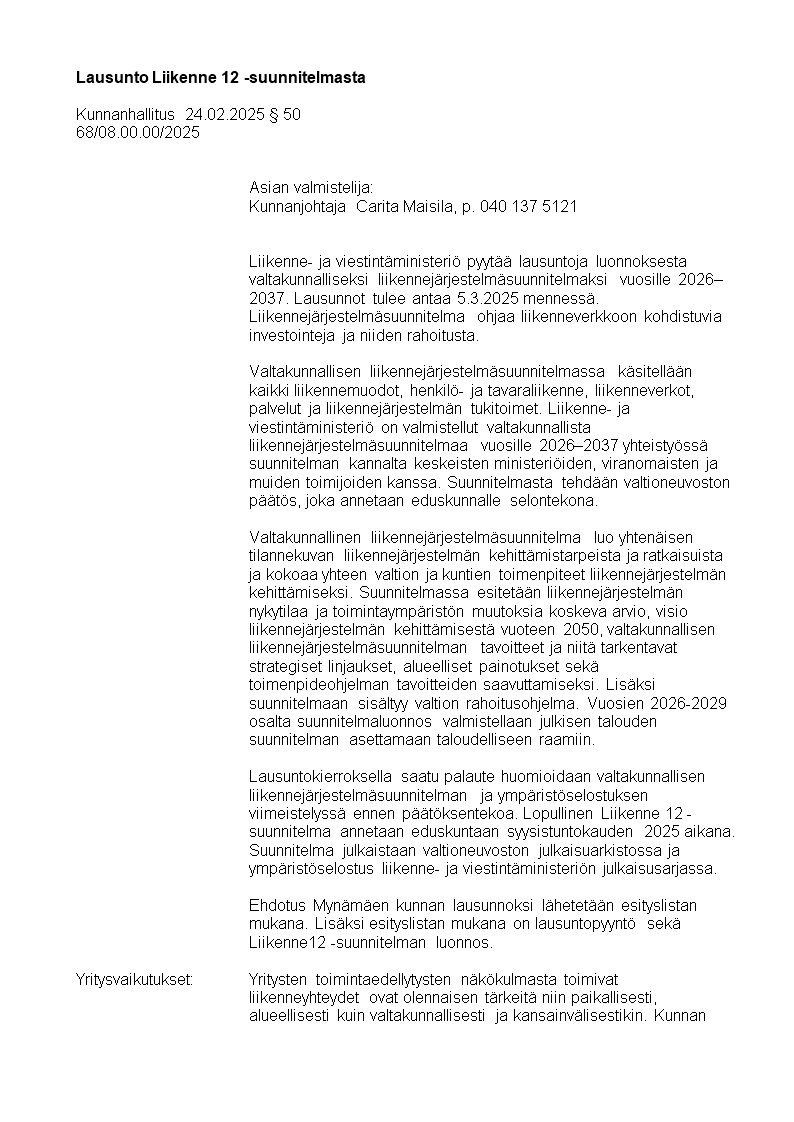 Pöytäkirja 24.02.2025/Pykälä 50