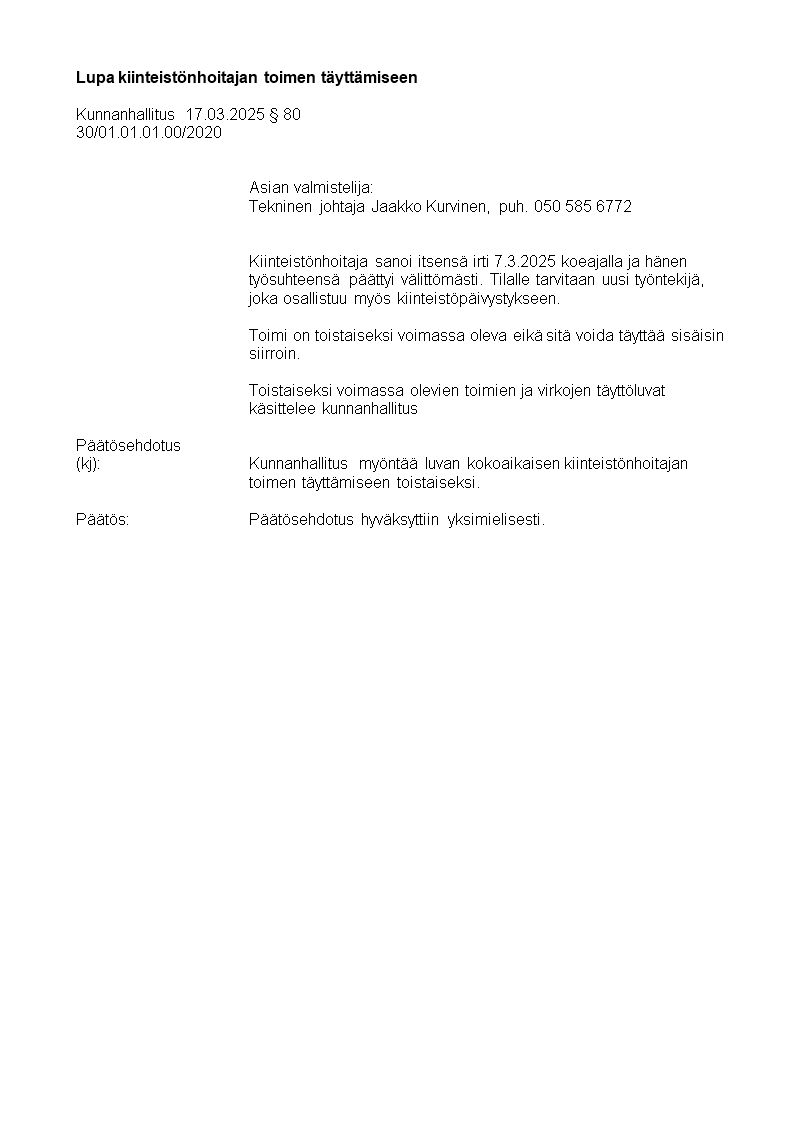 Pöytäkirja 17.03.2025/Pykälä 80