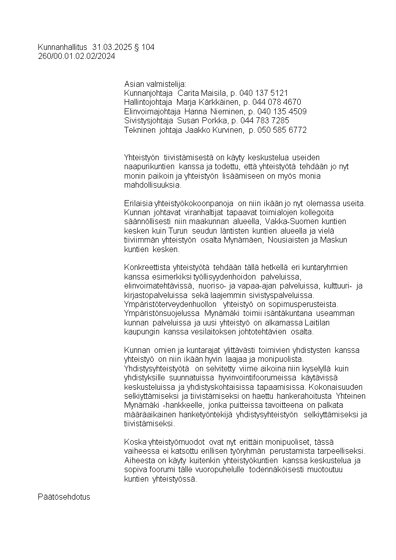 Pöytäkirja 31.03.2025/Pykälä 104
