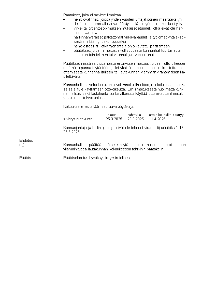 Pöytäkirja 31.03.2025/Pykälä 106
