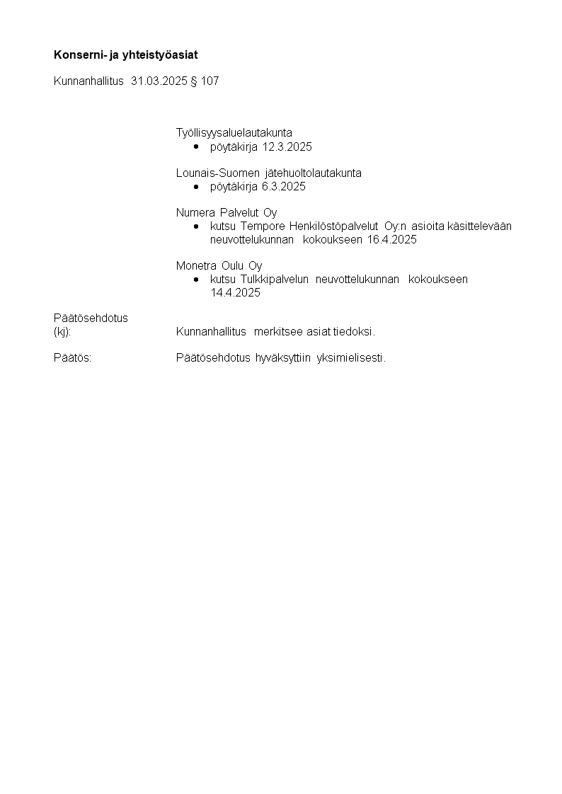 Pöytäkirja 31.03.2025/Pykälä 107