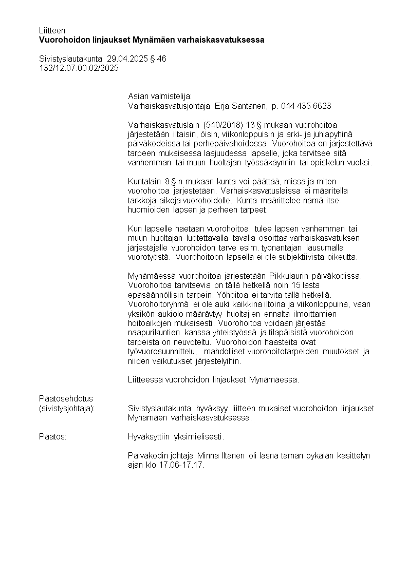 Pöytäkirja 29.04.2025/Pykälä 46