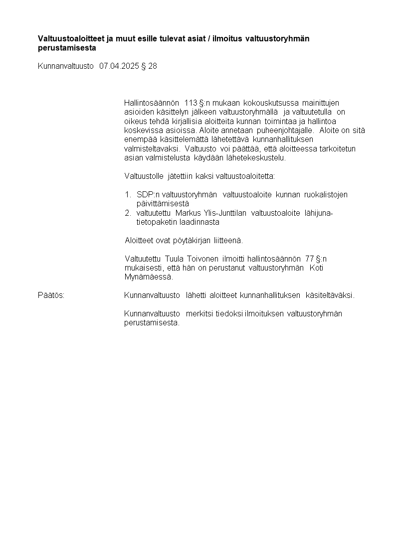 Pöytäkirja 07.04.2025/Pykälä 28