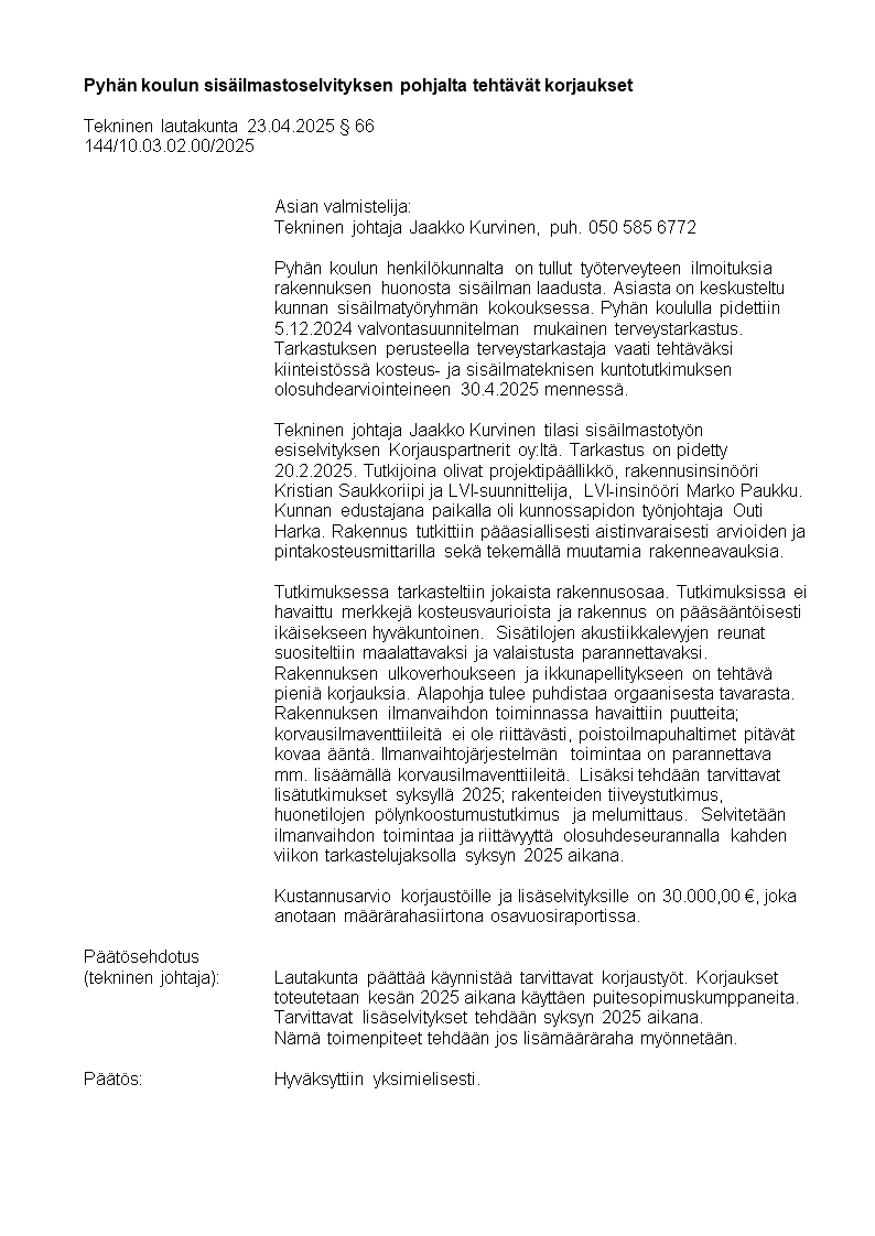 Pöytäkirja 23.04.2025/Pykälä 66