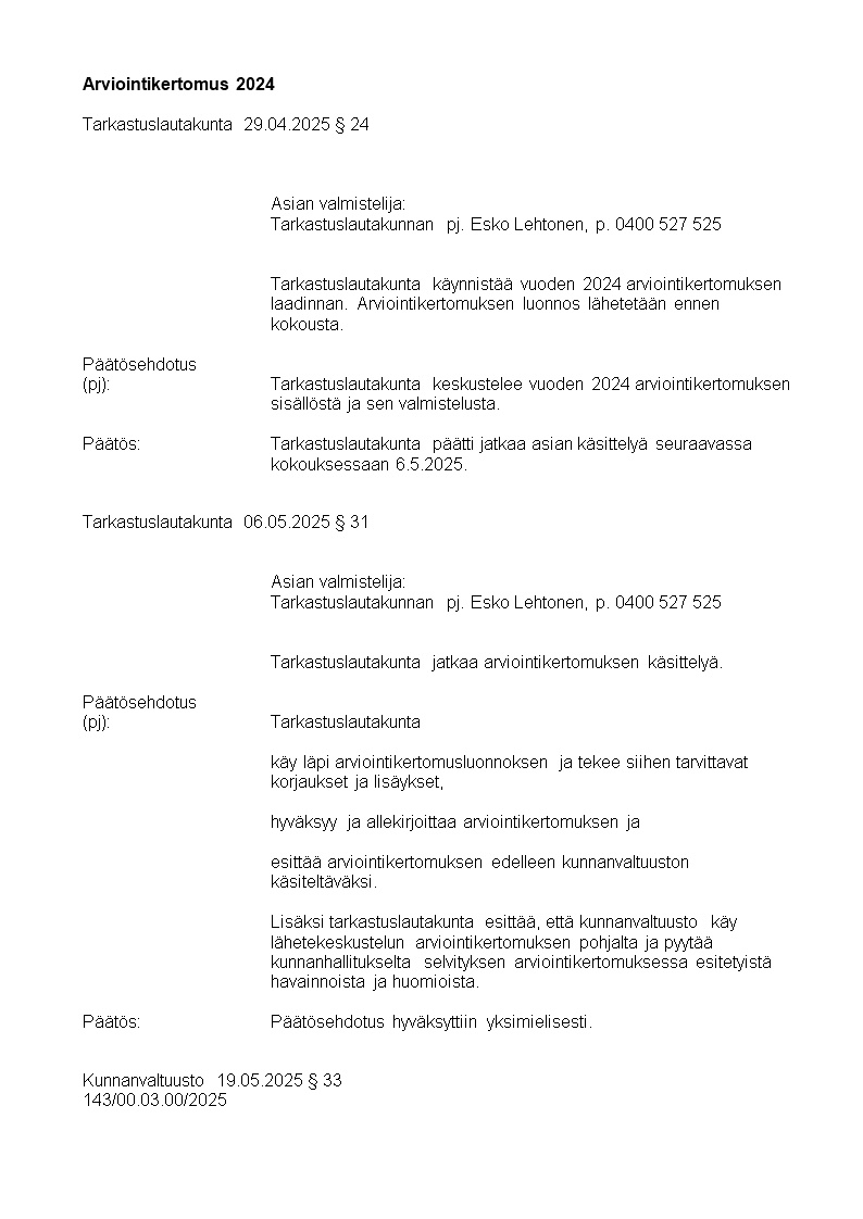 Vuoden 2024 arviointikertomus, allekirjoitettu