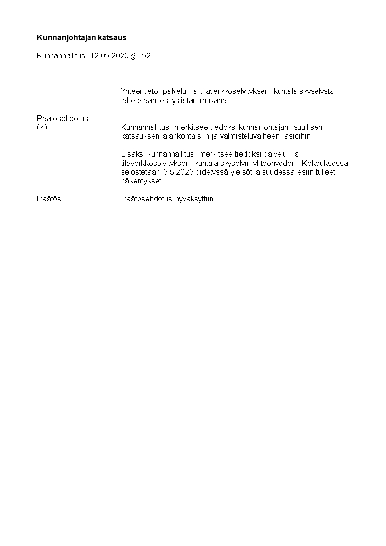 Pöytäkirja 12.05.2025/Pykälä 152