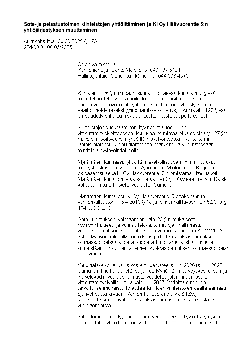 Pöytäkirja 09.06.2025/Pykälä 173