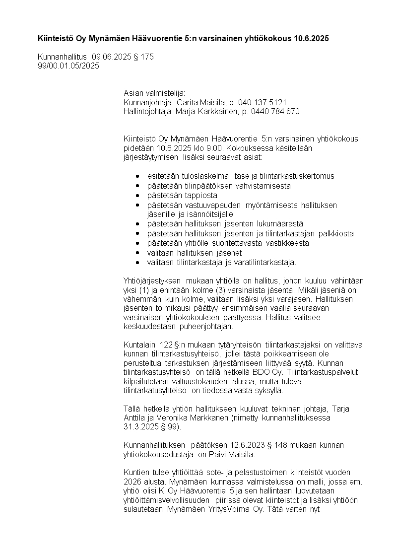 Pöytäkirja 09.06.2025/Pykälä 175