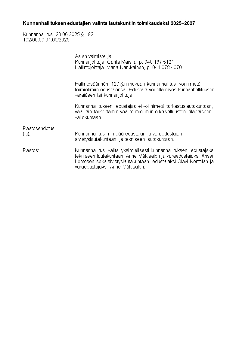 Pöytäkirja 23.06.2025/Pykälä 192