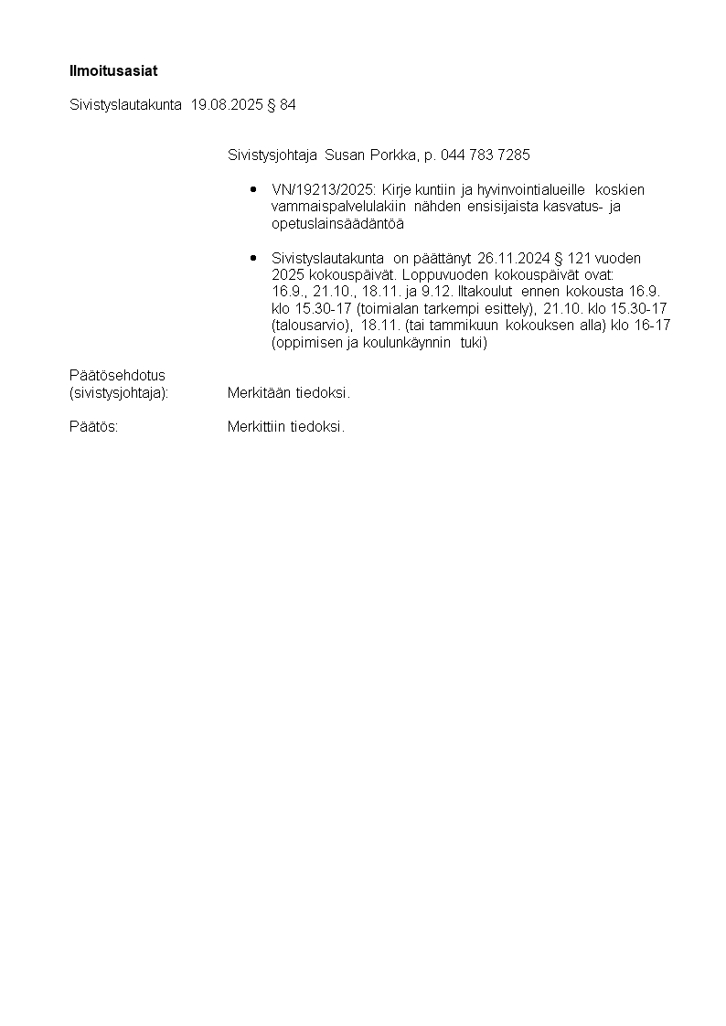 Pöytäkirja 19.08.2025/Pykälä 84