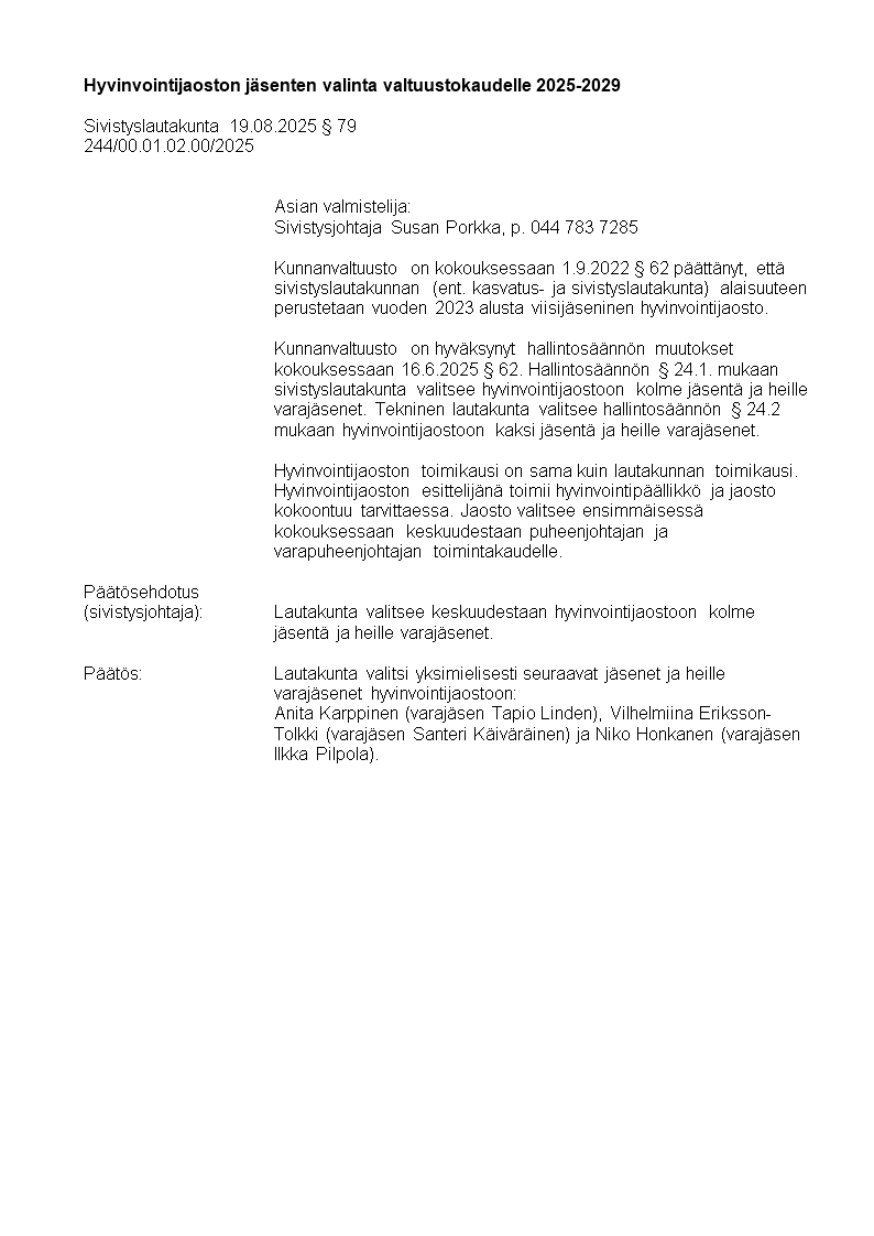 Pöytäkirja 19.08.2025/Pykälä 79