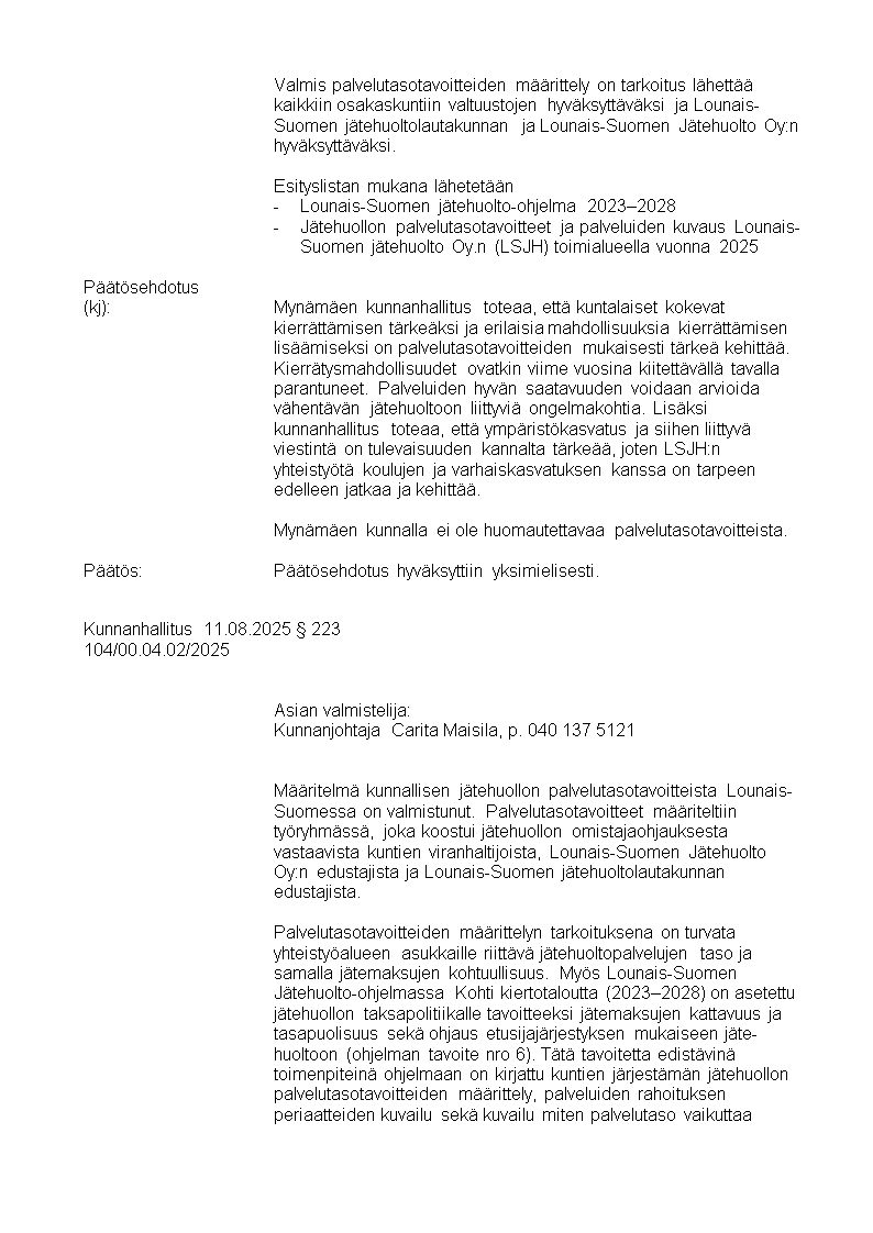 Pöytäkirja 11.08.2025/Pykälä 223