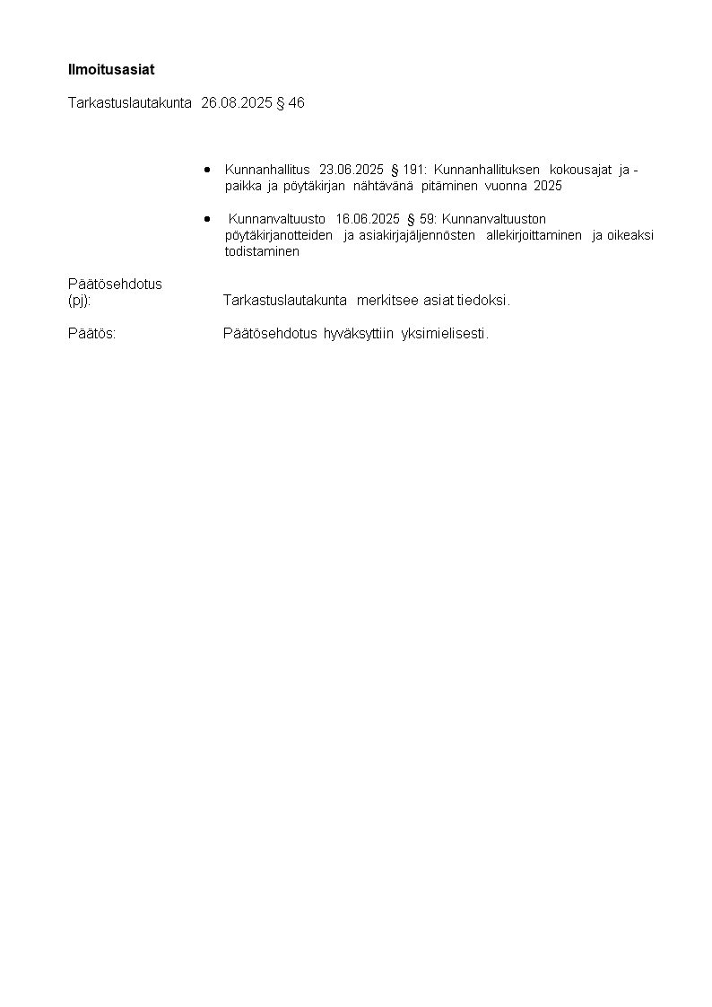 Kokousasiat:https://poytakirjat.mynamaki.fi:443/cgi/DREQUEST.PHP?page=rss/meetingitems&show=30