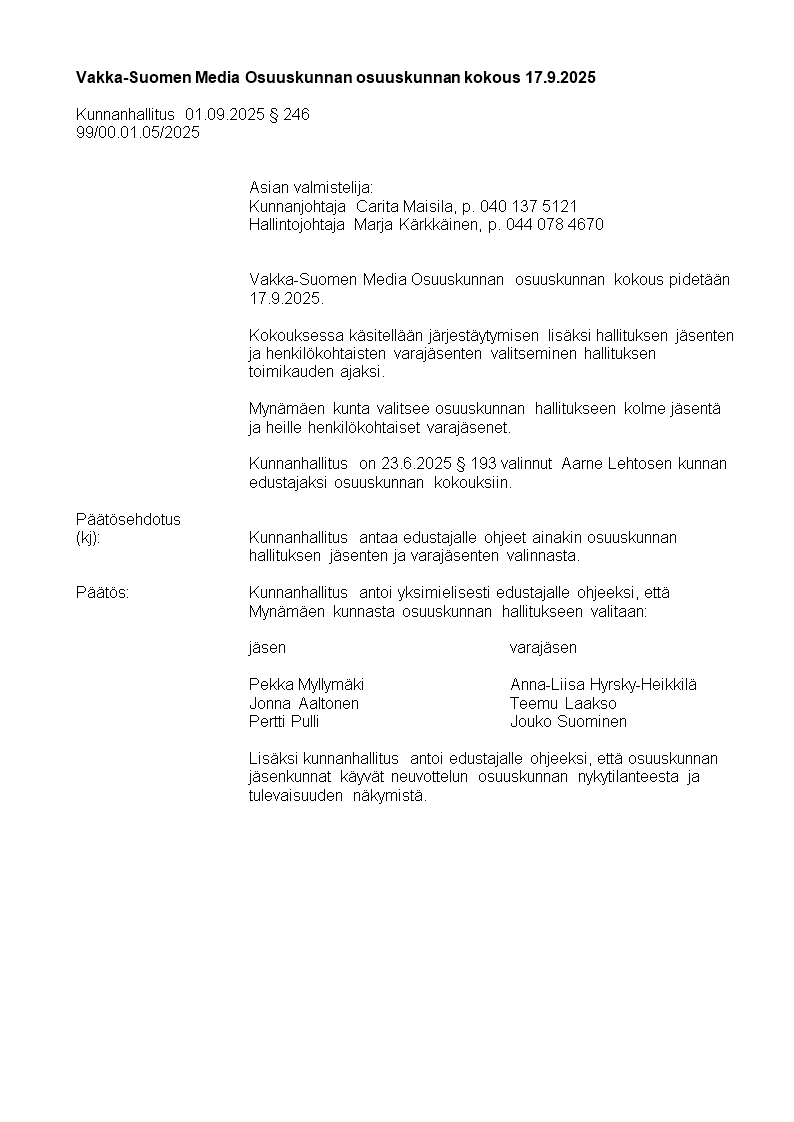 Dynasty tietopalvelu Haku RSS Mynämäen kunta