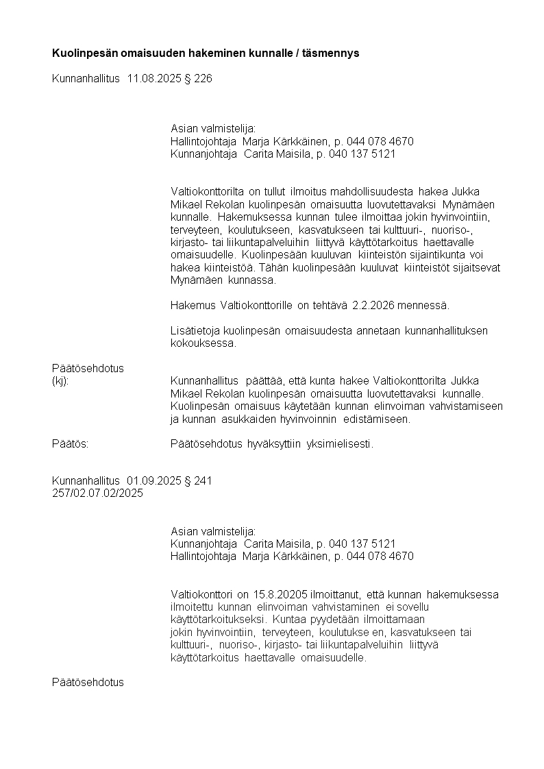 Dynasty tietopalvelu Haku RSS Mynämäen kunta