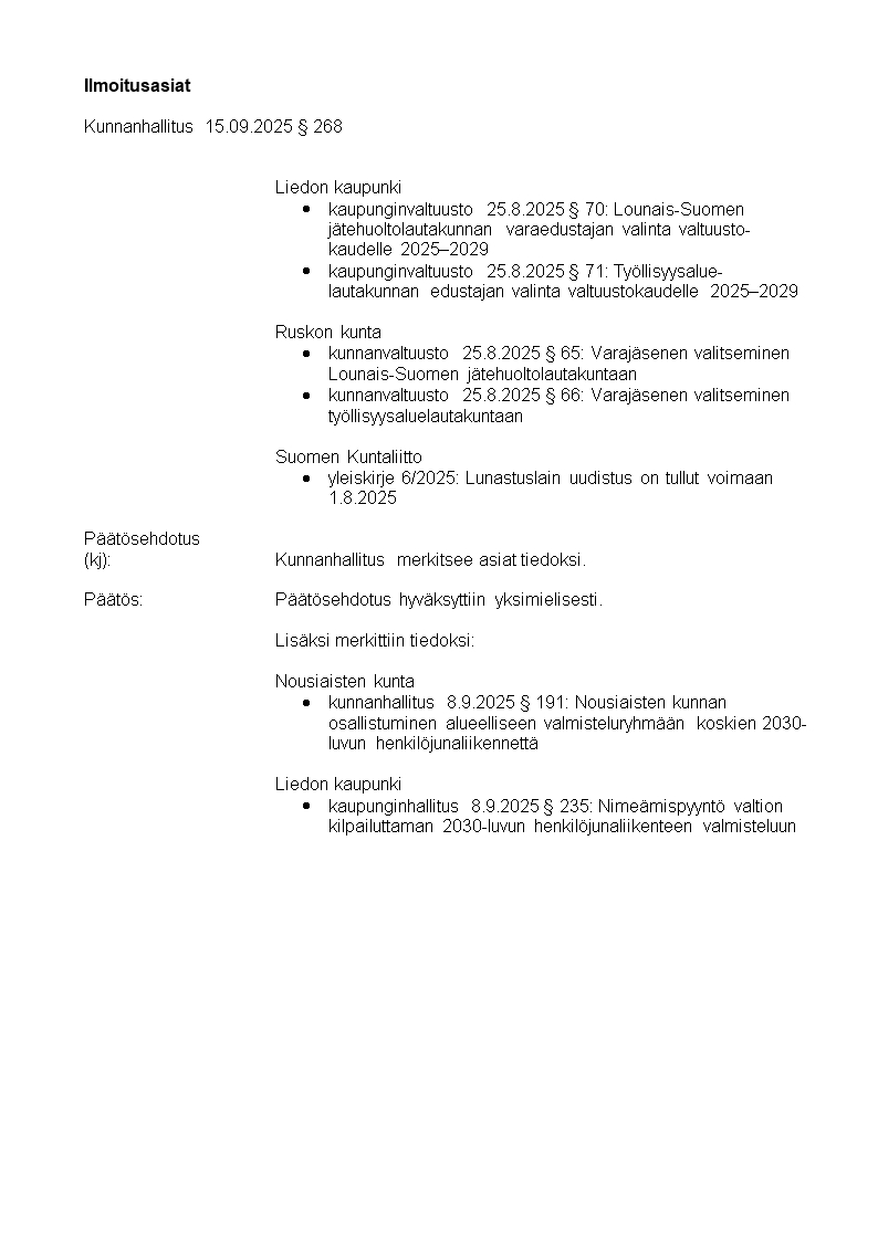 Pöytäkirja 15.09.2025/Pykälä 268