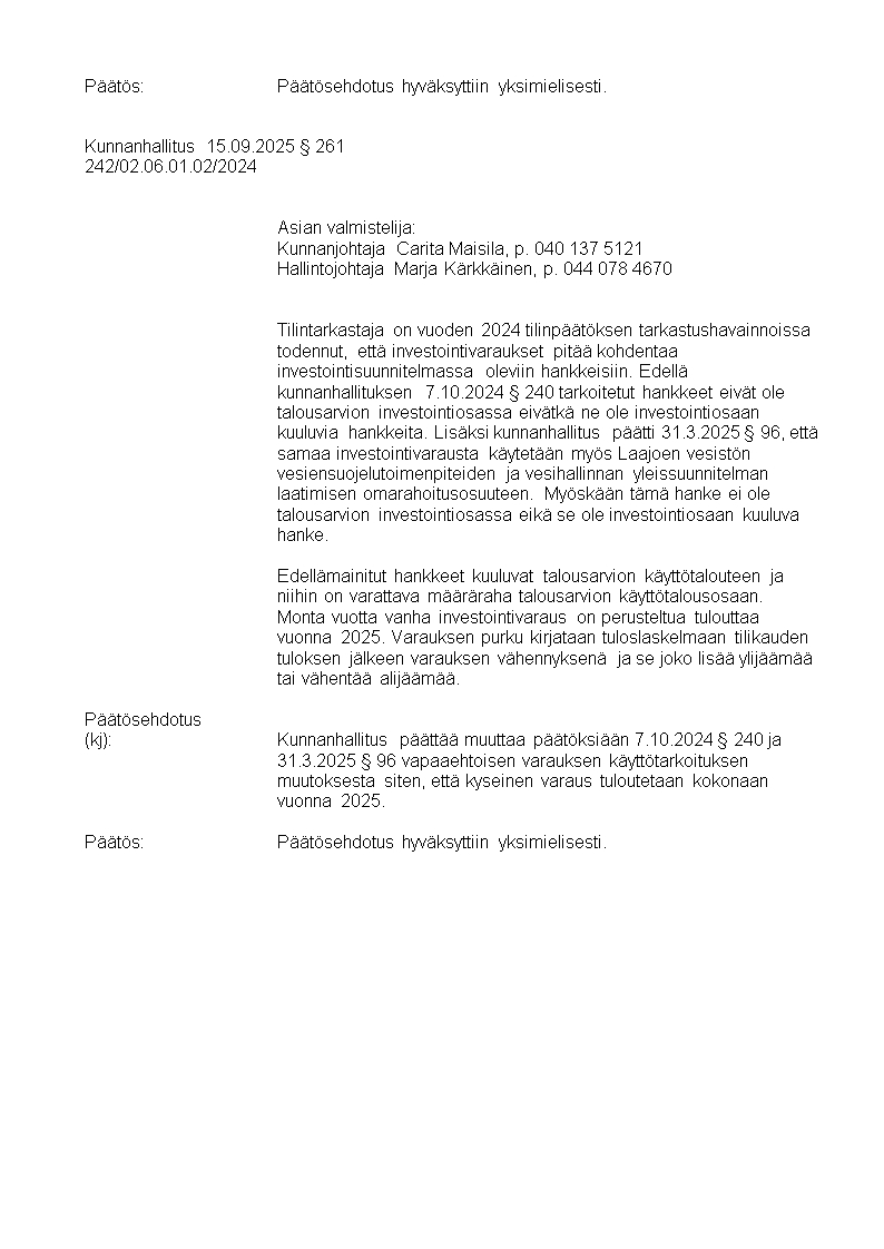 Pöytäkirja 15.09.2025/Pykälä 261