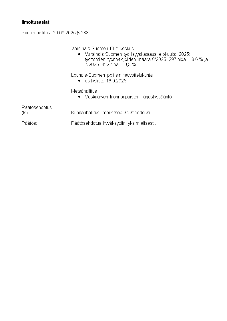 Pöytäkirja 29.09.2025/Pykälä 283