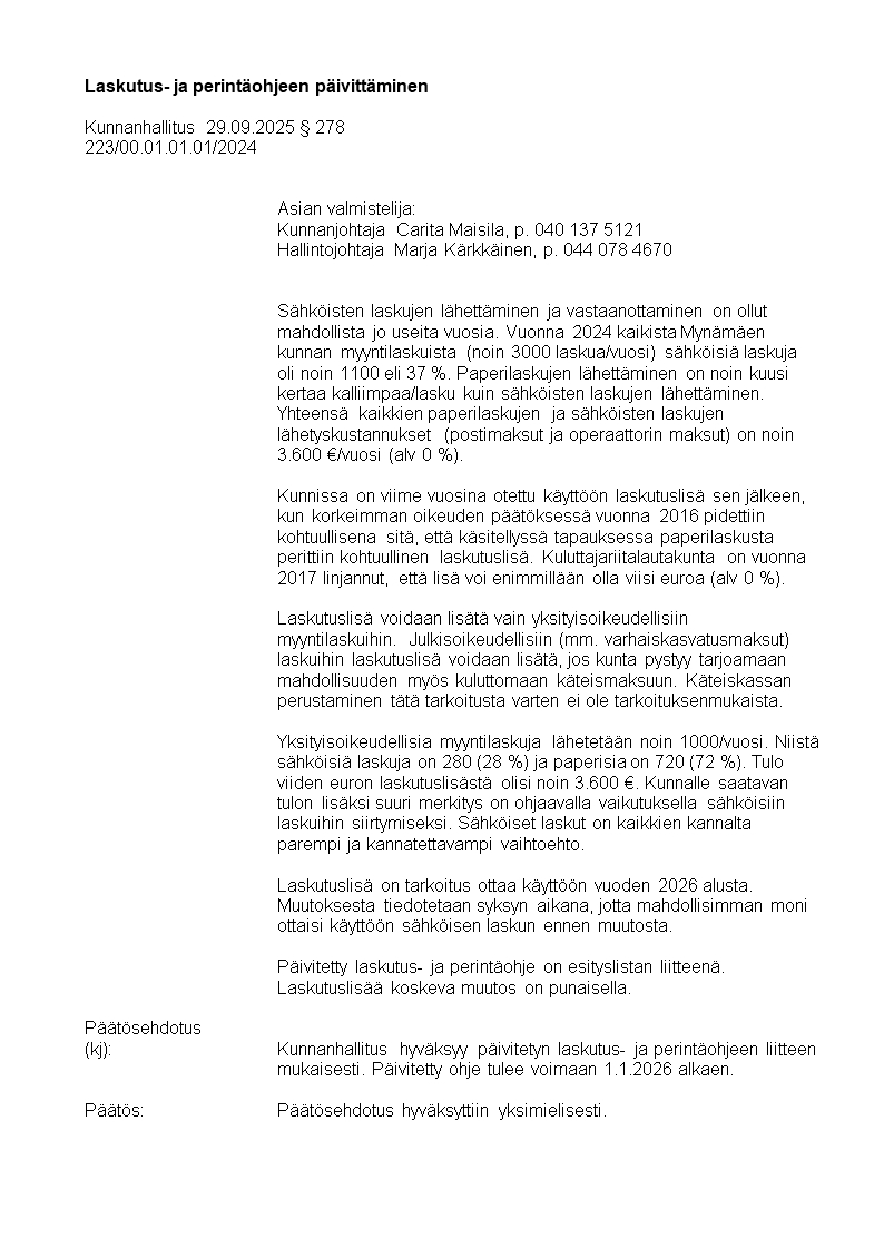 Pöytäkirja 29.09.2025/Pykälä 278