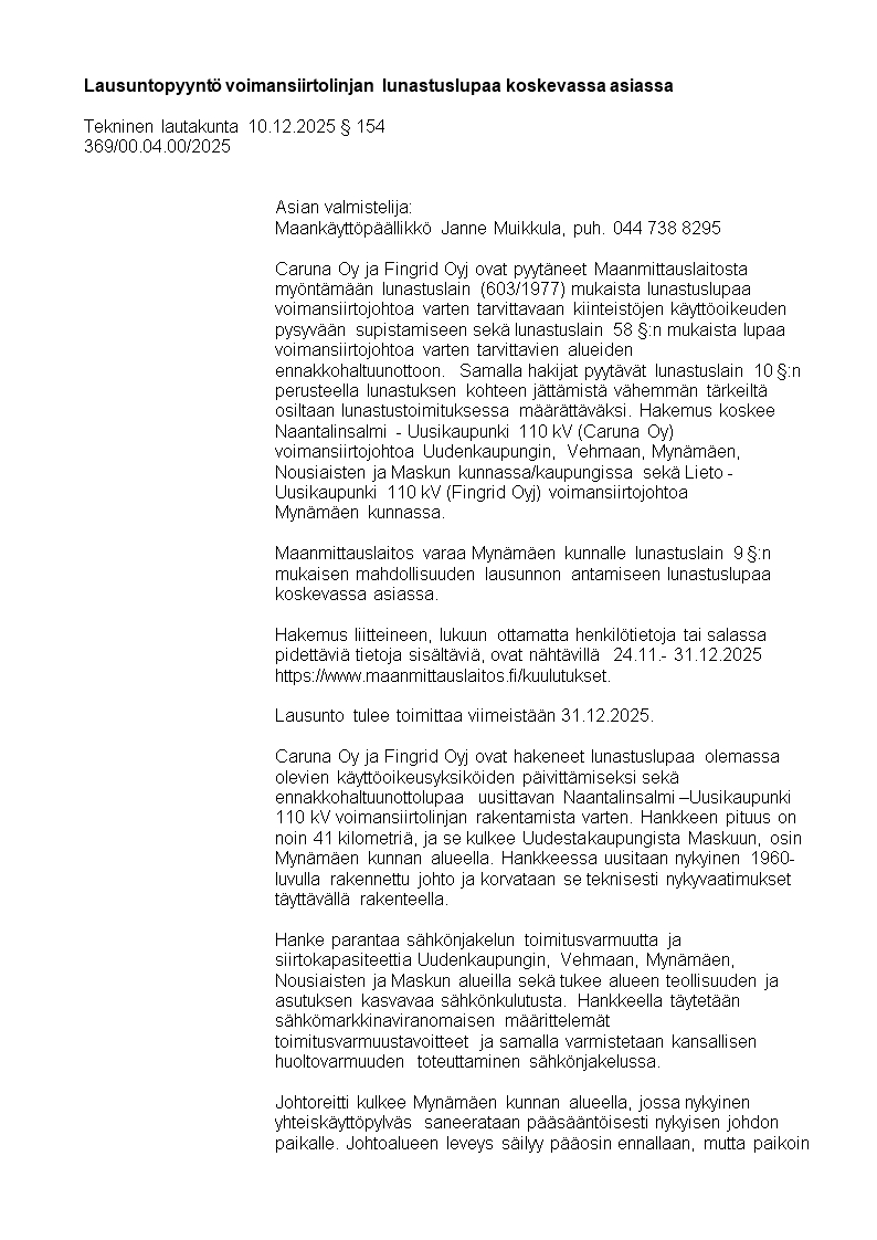 Pöytäkirja 10.12.2025/Pykälä 154
