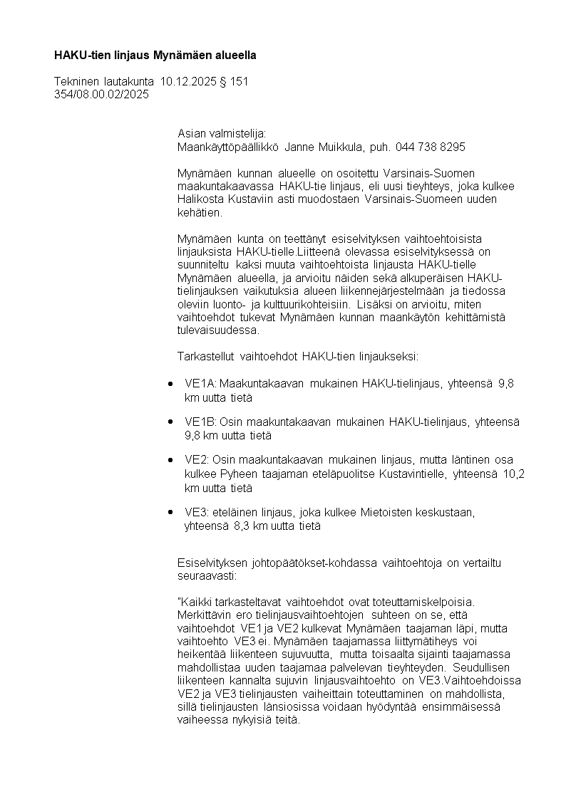 Pöytäkirja 10.12.2025/Pykälä 151