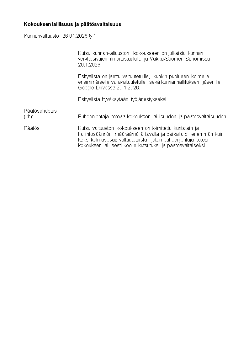Pöytäkirja 26.01.2026/Pykälä 1