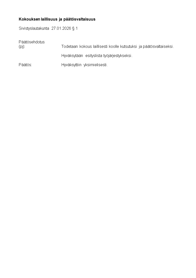 Pöytäkirja 27.01.2026/Pykälä 1