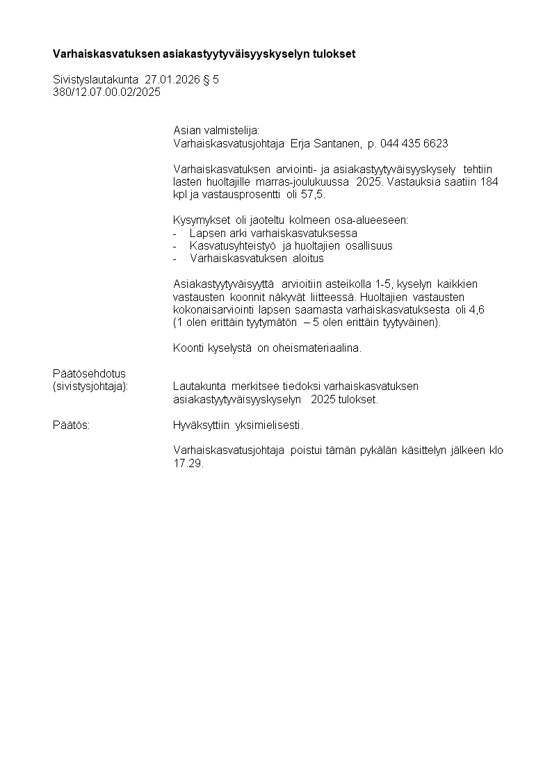 Pöytäkirja 27.01.2026/Pykälä 5