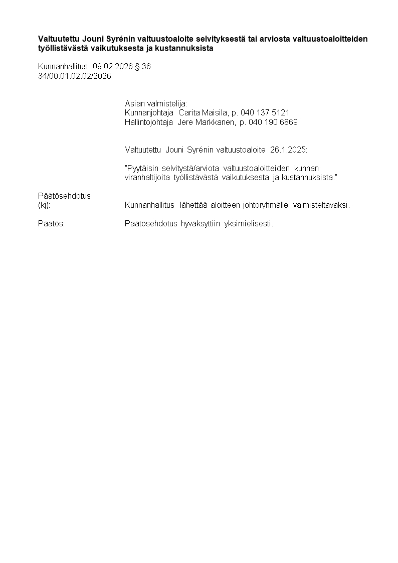 Pöytäkirja 09.02.2026/Pykälä 36