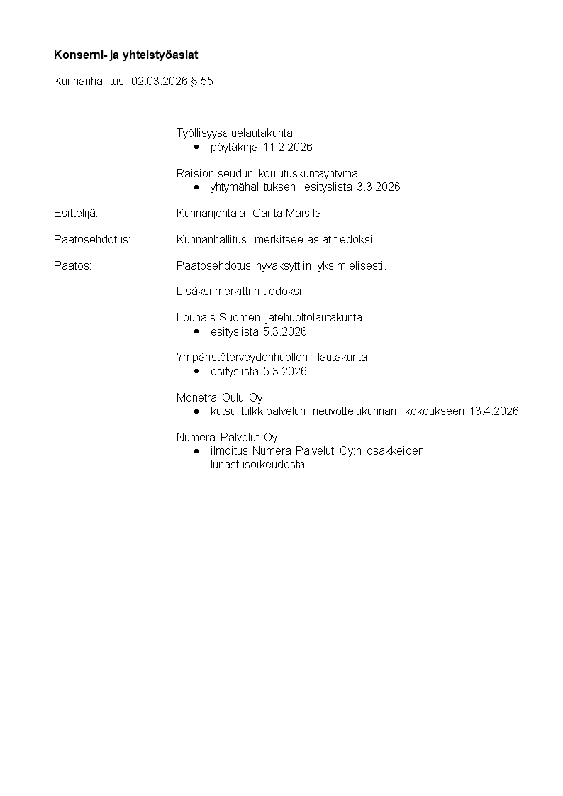Pöytäkirja 02.03.2026/Pykälä 55