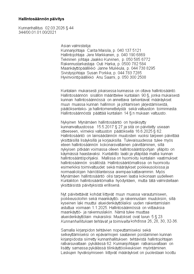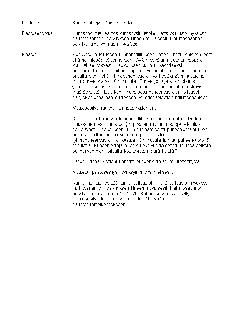Hallintosääntö 1.4.2026 alkaen