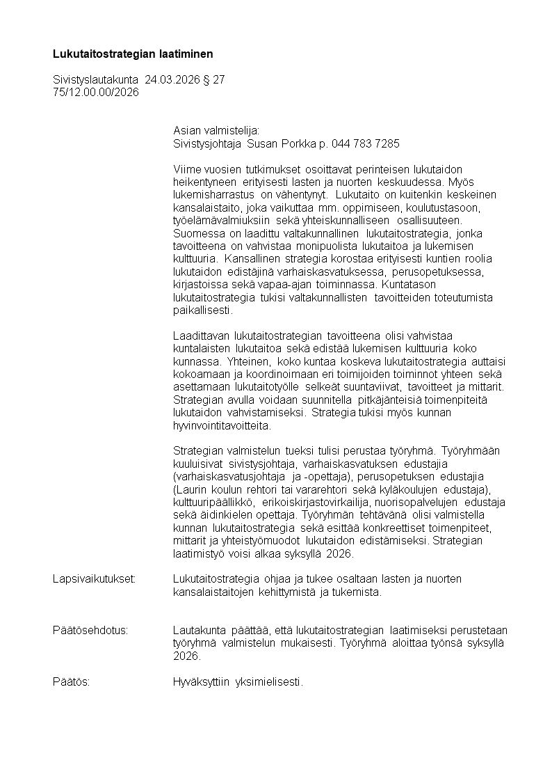 Pöytäkirja 24.03.2026/Pykälä 27