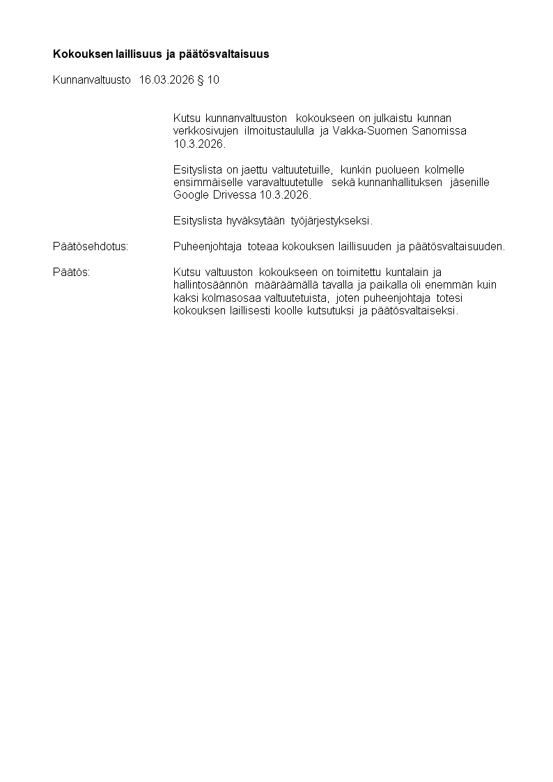 Pöytäkirja 16.03.2026/Pykälä 10