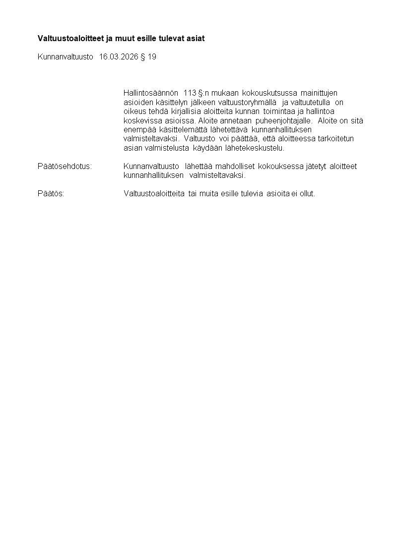 Pöytäkirja 16.03.2026/Pykälä 19